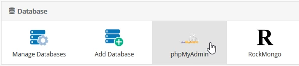 - Une fois connecté au panneau d'administration Webuzo, recherchez la section "Base de données" dans la fenêtre affichée et sélectionnez "phpMyAdmin" à partir de là