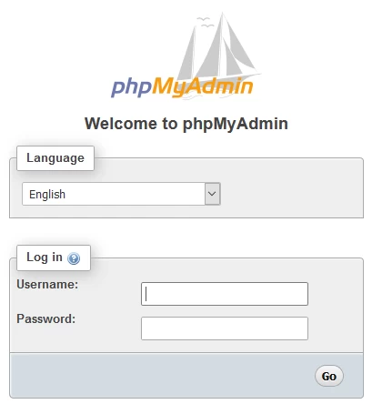 - Dans la page qui s'ouvrira, une fenêtre apparaîtra où l'utilisateur et le mot de passe de la base de données qu'il souhaite accéder seront saisis, après quoi le bouton "Go" sera pressé.
