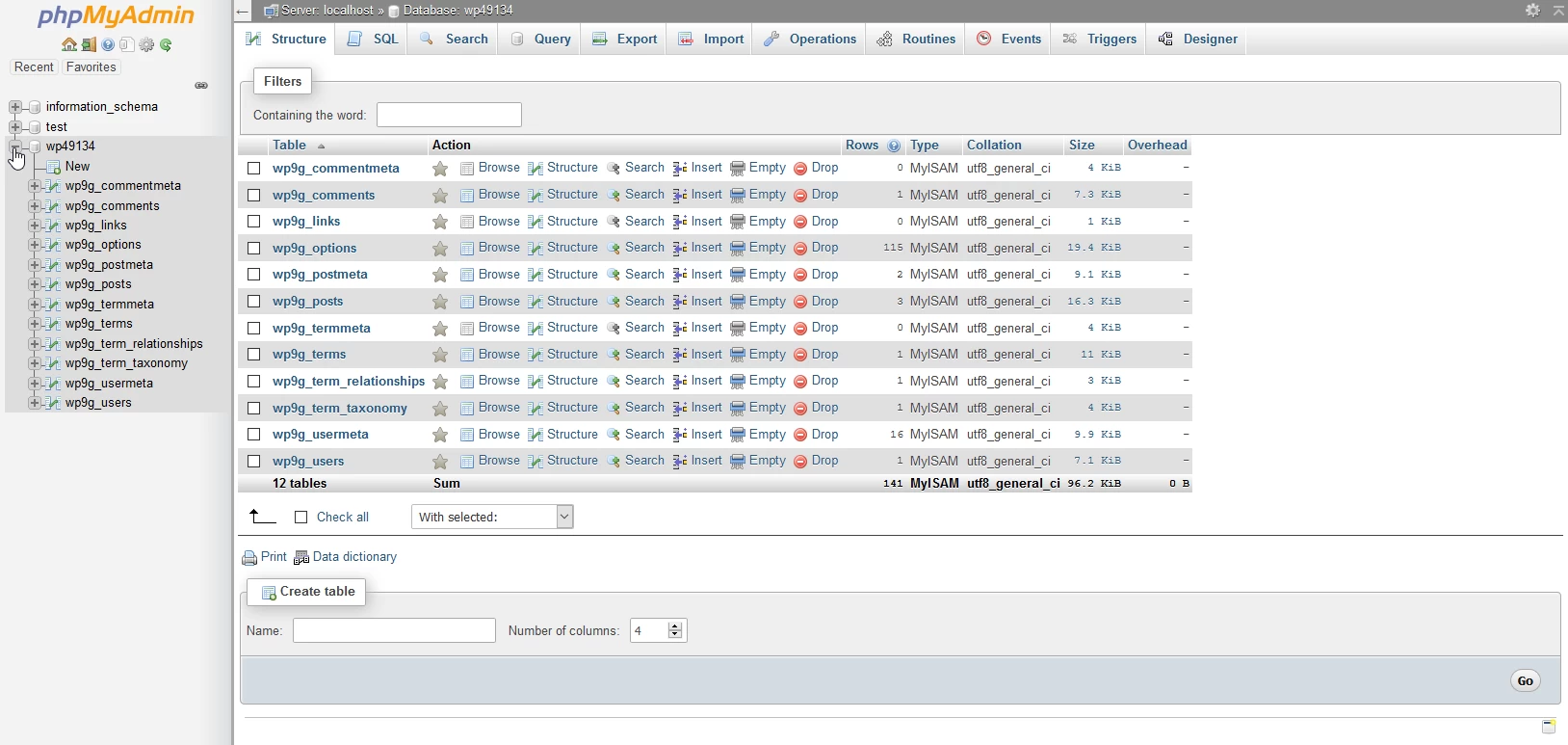 - Webuzo a l'application PhpMyAdmin préinstallée dans le panneau. Cette application nous permet de visualiser graphiquement la base de données.