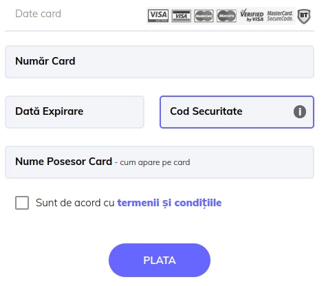 - Après avoir associé un nom de carte, le système redirigera automatiquement la page vers le processeur de paiement, où vous devrez remplir les détails de la carte que vous souhaitez enregistrer. Vous confirmez la procédure en cliquant sur le bouton PAYER.