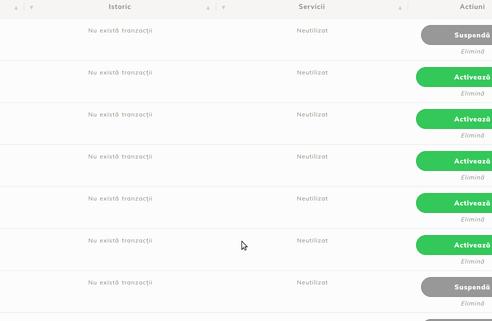 8. Liste des actions Activer / Suspendre / Supprimer des cartes