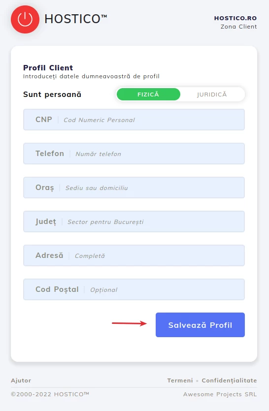 • La page où vous devez remplir les champs avec vos données personnelles ou celles de la société s'ouvrira, données qui seront protégées conformément à la Politique de Confidentialité.