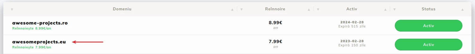 - Après vous être connecté au compte client Hostico, accédez à la section Domaines;