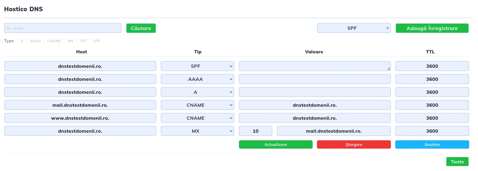 Dans la nouvelle interface ouverte, les enregistrements DNS actifs pour le domaine sélectionné seront affichés.