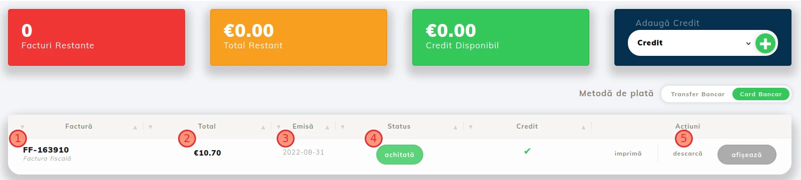 - (5) Télécharger - offre la possibilité de télécharger la facture localement.
